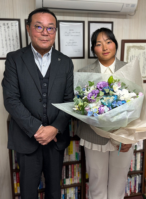 2025.12.26 お知らせ 弊社契約の平岡瑠依選手が来社されました。 Tweet 弊社契約の平岡瑠依選手が来社して、今年のシーズンの報告と来期の抱負について聞かせてもらいました。 弊社は2026年シーズンも変わらず平岡瑠依選手を応援します。 引き続き、皆様の熱き応援を賜りますよう、よろしくお願いいたします。